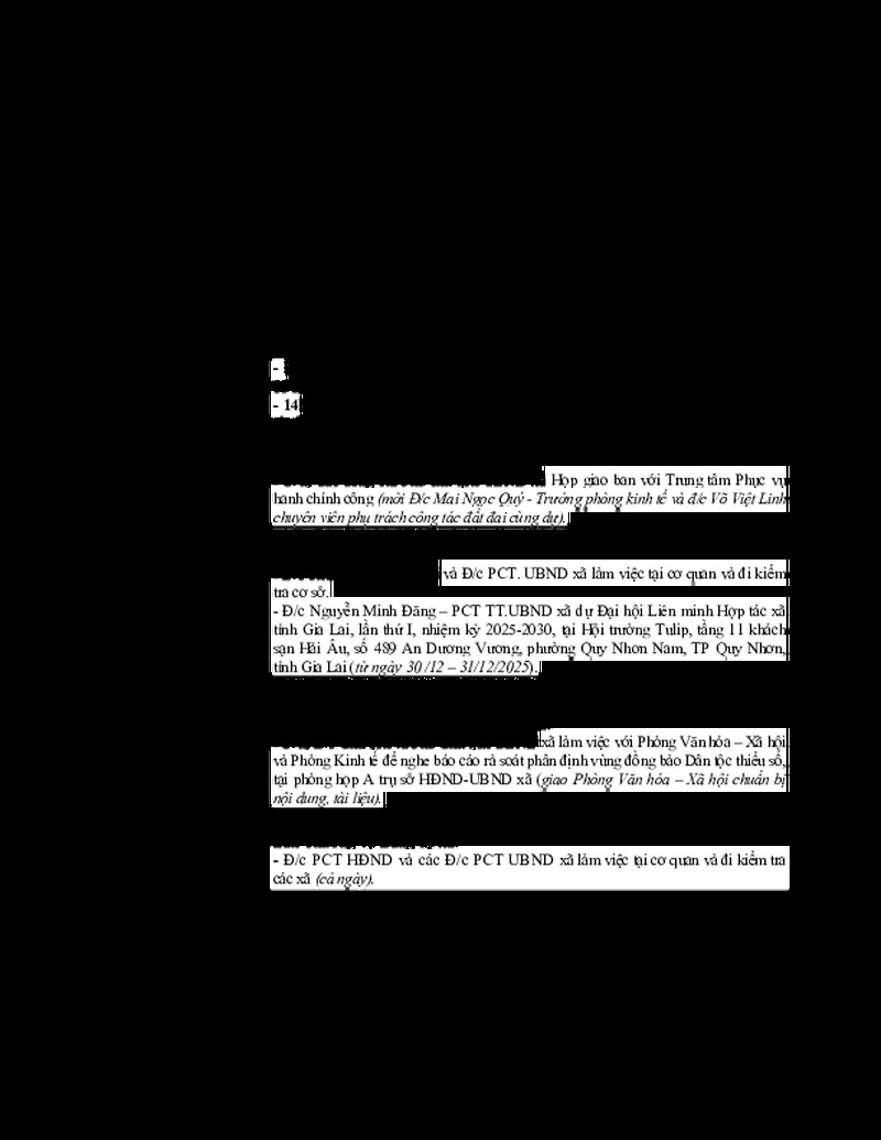 Lịch làm việc của Thường trực HĐND xã và Lãnh đạo UBND xã tuần 53 29/12/2025, 07:21:29 - Lượt xem: 5 Tweet Thêm vào danh sách Báo xấu Thông tin tài liệu Lịch làm việc của Thường trực HĐND xã và Lãnh đạo UBND xã tuần 53