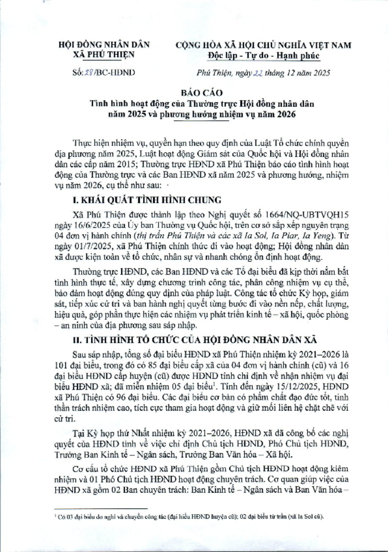 Báo cáo số 27/BC-HĐND ngày 22/12/2025 của HĐND xã về Tình hình hoạt động của Thường trực Hội đồng nhân dân năm 2025 và phương hướng nhiệm vụ năm 2026 25/12/2025, 14:33:06 - Lượt xem: 1 Tweet Thêm vào danh sách Báo xấu Thông tin tài liệu Báo cáo số 27/BC-HĐND ngày 22/12/2025 của HĐND xã về Tình hình hoạt động của Thường trực Hội đồng nhân dân năm 2025 và phương hướng nhiệm vụ năm 2026