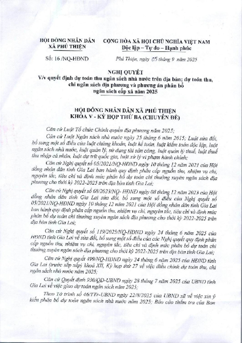 Nghị quyết số 16/NQ-HĐND ngày 05/12/2025 của HĐND xã về quyết định dự toán thu ngân sách nhà nước trên địa bàn; dự toán thu, chi ngân sách địa phương và phương án phân bổ ngân sách cấp xã năm 2025