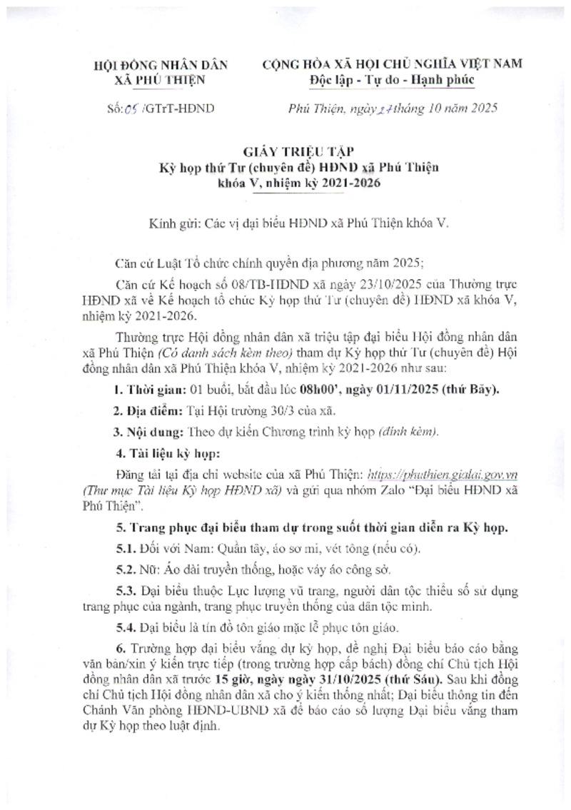 Giấy Triệu tập số 05/GTrT-HĐND ngày 17/10/2025 của HĐND xã về việc triệu tập kỳ họp thứ Tư 31/10/2025, 16:42:23 - Lượt xem: 1 Tweet Thêm vào danh sách Báo xấu Thông tin tài liệu Giấy Triệu tập số 05/GTrT-HĐND ngày 17/10/2025 của HĐND xã về việc triệu tập kỳ họp thứ Tư
