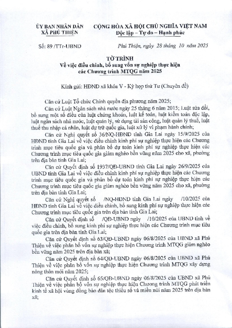 Tờ trình số 89/TTr-UBND ngày28/10/2025 của UBND xã về việc điều chỉnh, bỗ sung vốn sự nghiệp thực hiện các Chương trình MTQG năm 2025 31/10/2025, 16:48:42 - Lượt xem: 2 Tweet Thêm vào danh sách Báo xấu Thông tin tài liệu Tờ trình số 89/TTr-UBND ngày28/10/2025 của UBND xã về việc điều chỉnh, bỗ sung vốn sự nghiệp thực hiện các Chương trình MTQG năm 2025