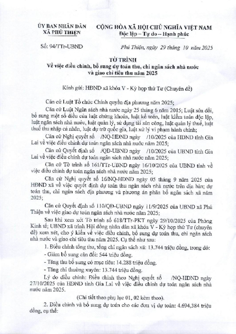 Tờ trình số 94/TTr-UBND ngày 29/10/2025 của UBND xã về việc điều chỉnh, bỗ sung vốn sự nghiệp thực hiện các Chương trình MTQG năm 2025 31/10/2025, 16:49:36 - Lượt xem: 1 Tweet Thêm vào danh sách Báo xấu Thông tin tài liệu Tờ trình số 94/TTr-UBND ngày 29/10/2025 của UBND xã về việc điều chỉnh, bỗ sung vốn sự nghiệp thực hiện các Chương trình MTQG năm 2025